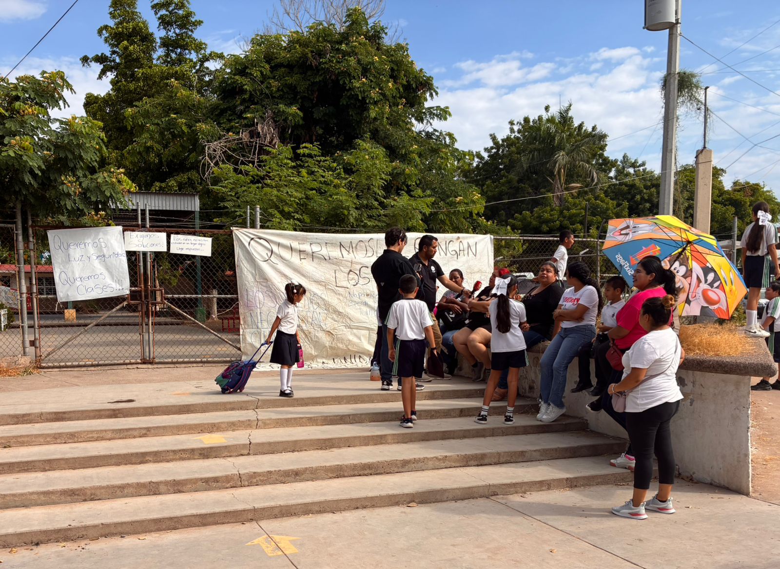 Como medida de presión, este jueves padres de familia de la Primaria Francisco Villa, ubicada en la colonia Praderas de Villa en Los Mochis, bloquearon de manera intermitente el bulevar Pedro Anaya, en exigencia del cableado eléctrico necesario para el funcionamiento de los aires acondicionados.