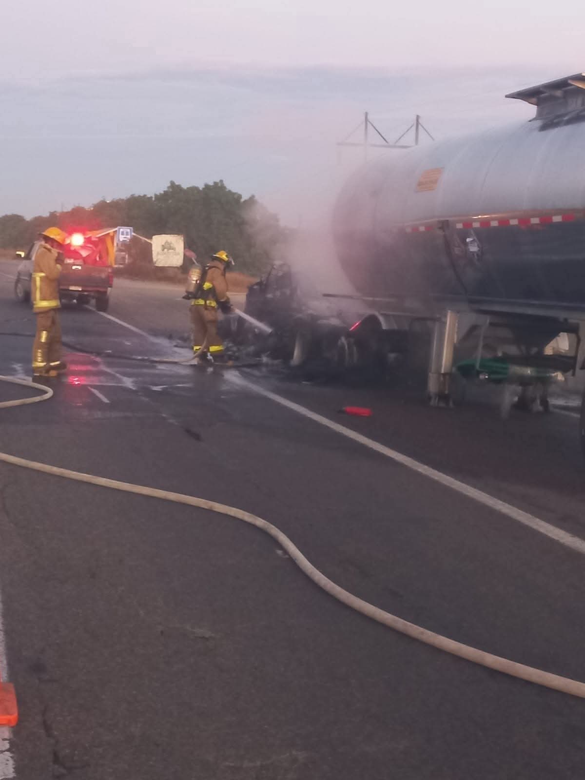 GUASAVE, SINALOA.- La mañana de este sábado se registró un incendio en la cabina de un tráiler que transportaba aproximadamente 40 mil litros de formol sobre la carretera México 15, situación que generó inmediata movilización de cuerpos de seguridad y emergencia en el tramo carretero ubicado a la altura del entronque hacia Las Parritas, por el potencial de explosión.