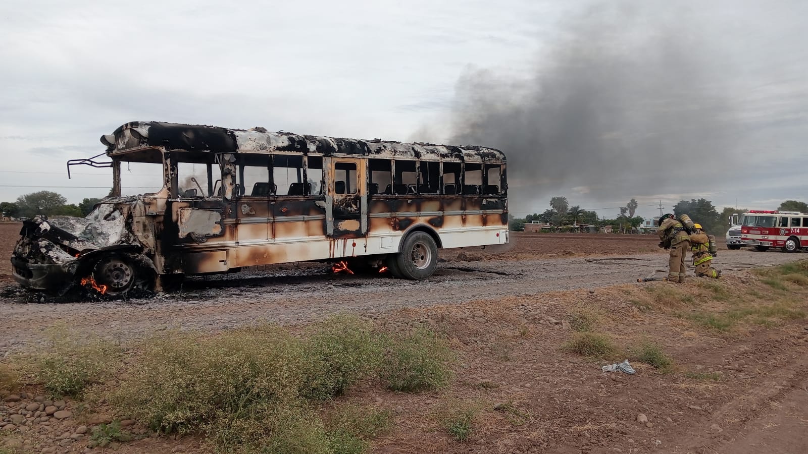 GUASAVE, SINALOA.- La tarde de este miércoles 3 de diciembre, un camión de transporte de personal agrícola quedó reducido a pérdida total tras incendiarse mientras circulaba por un camino de terracería frente al ejido Las Américas, perteneciente a la sindicatura de El Burrión.