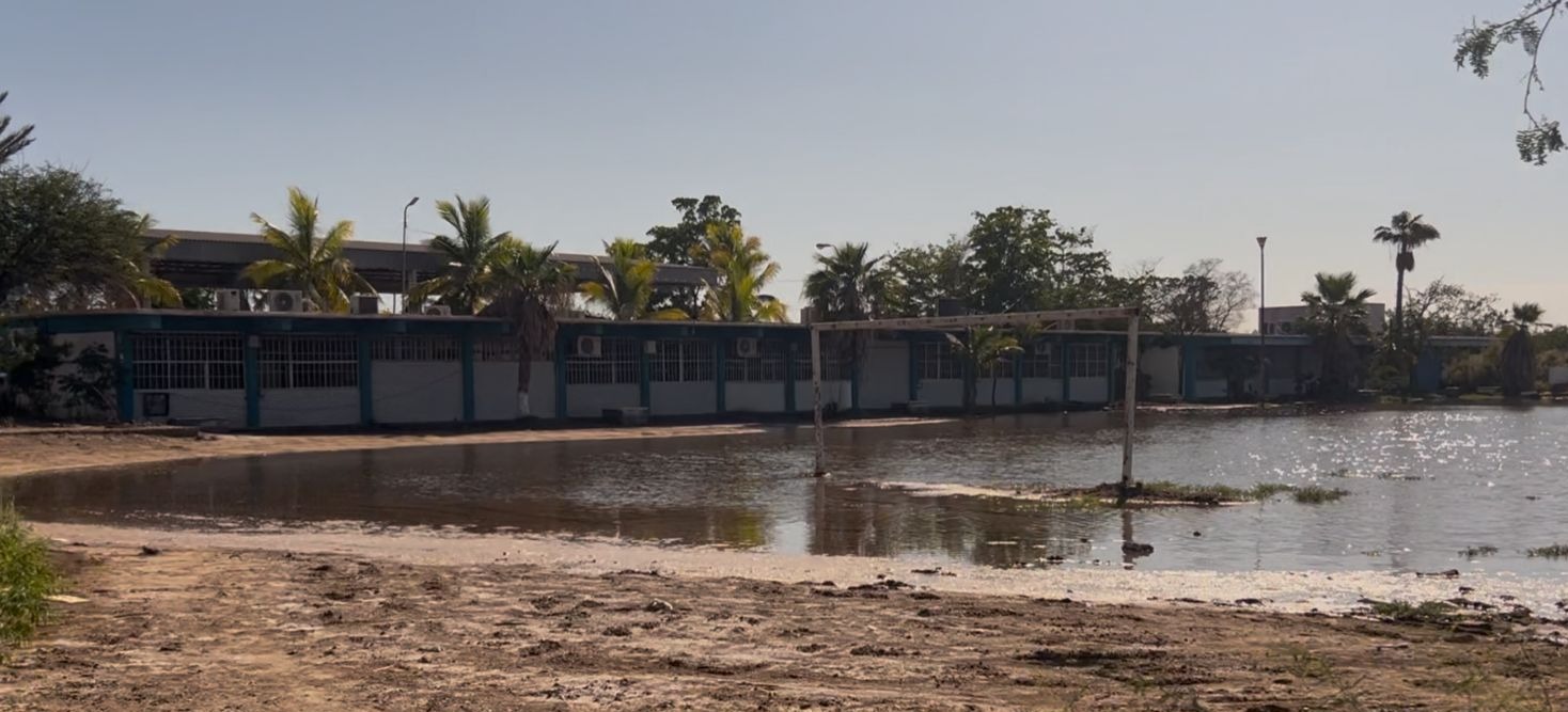 Ulises Pinzón, síndico de Topolobampo, informó que aunque el nivel del agua ya ha descendido y no se reportan daños estructurales graves, la suspensión se mantiene mientras se revisan las condiciones de la infraestructura eléctrica del plantel.