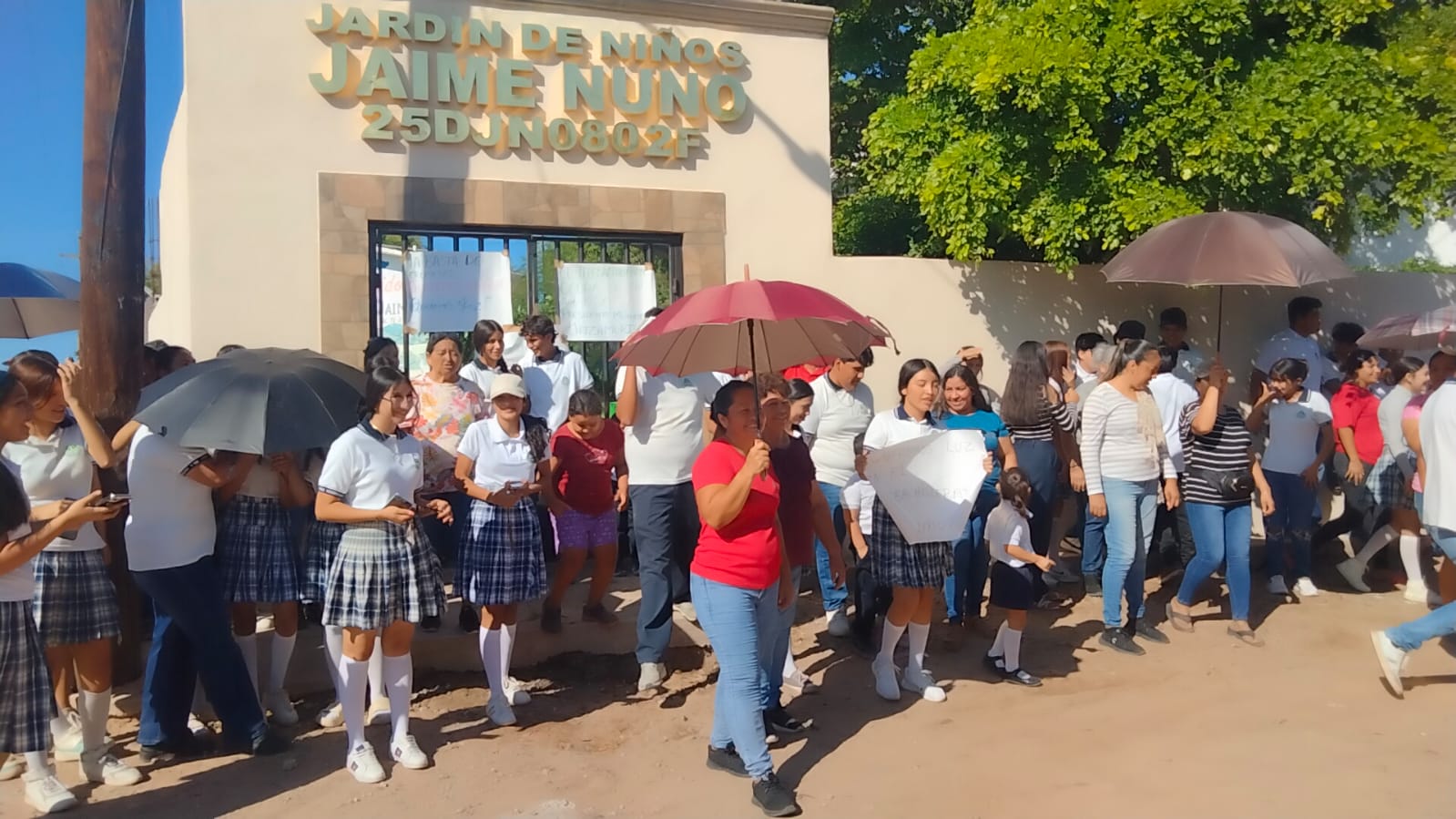 Por segundo día consecutivo, padres de familia mantienen tomadas las escuelas de la comunidad de El Jitzámuri, en el municipio de Ahome, como medida de protesta ante la falta de energía eléctrica en el Telebachillerato.