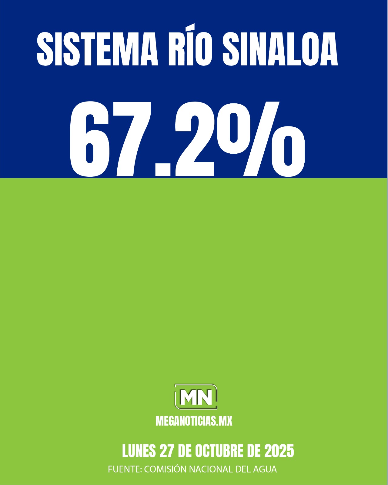 Por su parte, el sistema del Río Sinaloa muestra una mejor situación general, al ubicarse al 67.2 % de su capacidad, con un volumen total de 1,285.7 millones de metros cúbicos.