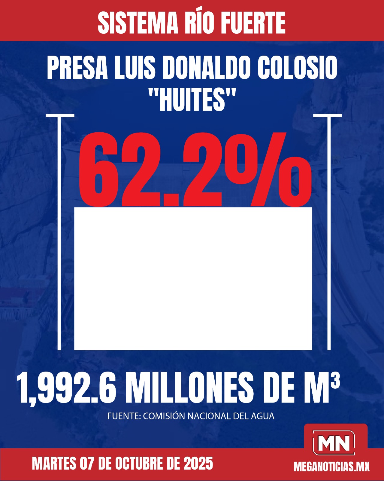 Entre las principales presas que integran este sistema, la Luis Donaldo Colosio es la que registra el mayor nivel de almacenamiento con 1,992.6 millones de metros cúbicos, es decir, un 62.2% de su capacidad total de conservación.