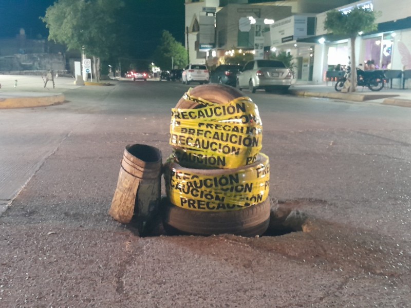 Se abre nuevo socavón en la Calle Cuauhtémoc en Guasave