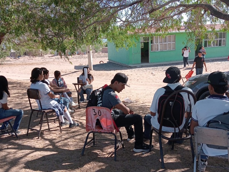Bajo árboles, sin luz y sin respuestas en Telebachillerato de El Jitzámuri