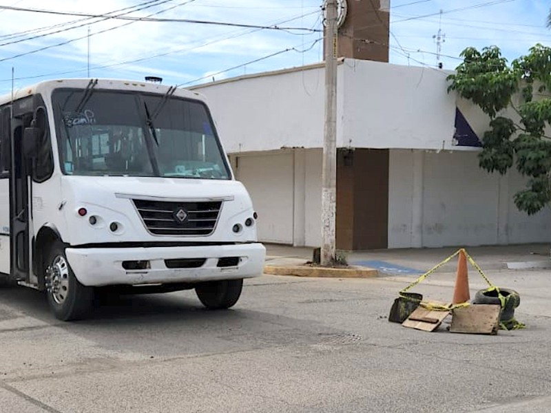 Nuevo socavón en Centro de Guasave altera rutas de urbanos