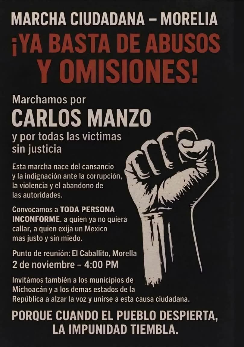 Tras el homicidio del presidente municipal de Uruapan, Carlos Alberto Manzo Rodríguez, la noche de este sábado en el Festival de las Velas en pleno centro histórico de Uruapan, ciudadanos han convocado a dos marchas para exigir justicia.