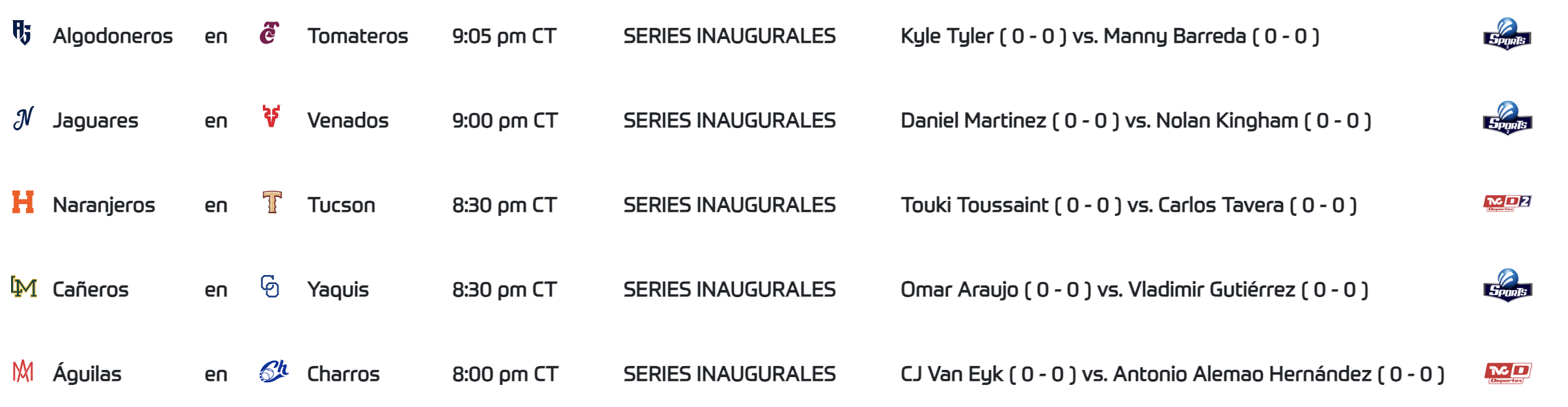 Con estos resultados, la Liga ARCO Mexicana del Pacífico levantó oficialmente el telón de la temporada 2025-2026. Las series inaugurales continuarán este jueves y podrán seguirse a través de TVC Deportes, TVC Deportes 2 y Megasports 1, 2 y 3.