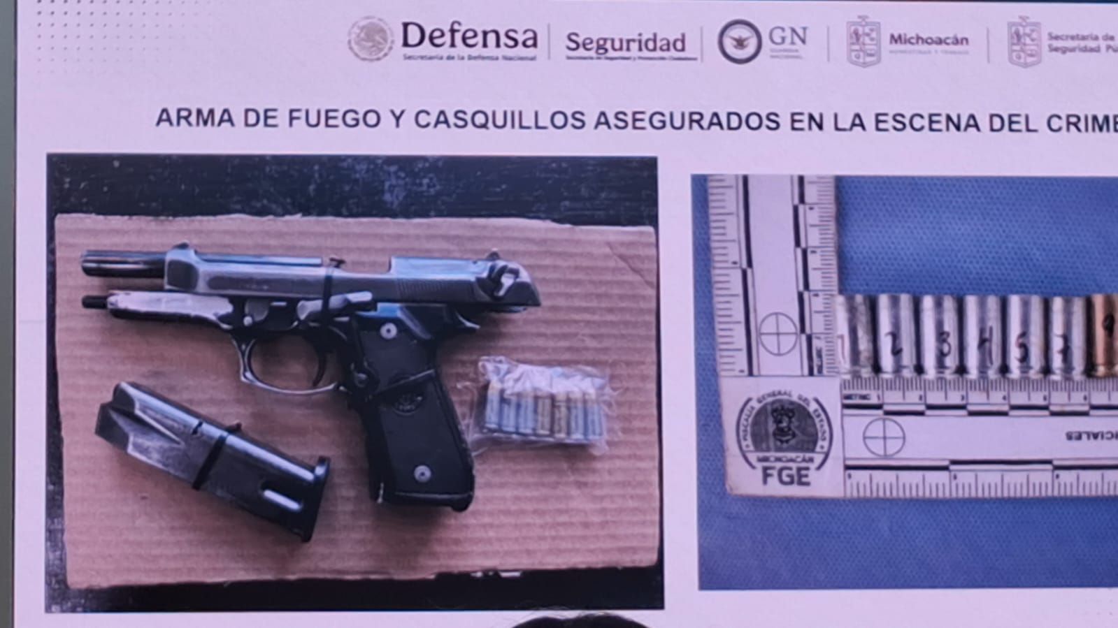 Carlos Torres Piña, fiscal de Michoacán: "Corre y ahí segundos después es sometido y también abatido en el mismo lugar el agresor, esta arma que se utilizó ha sido vinculada a otros hechos anteriormente".