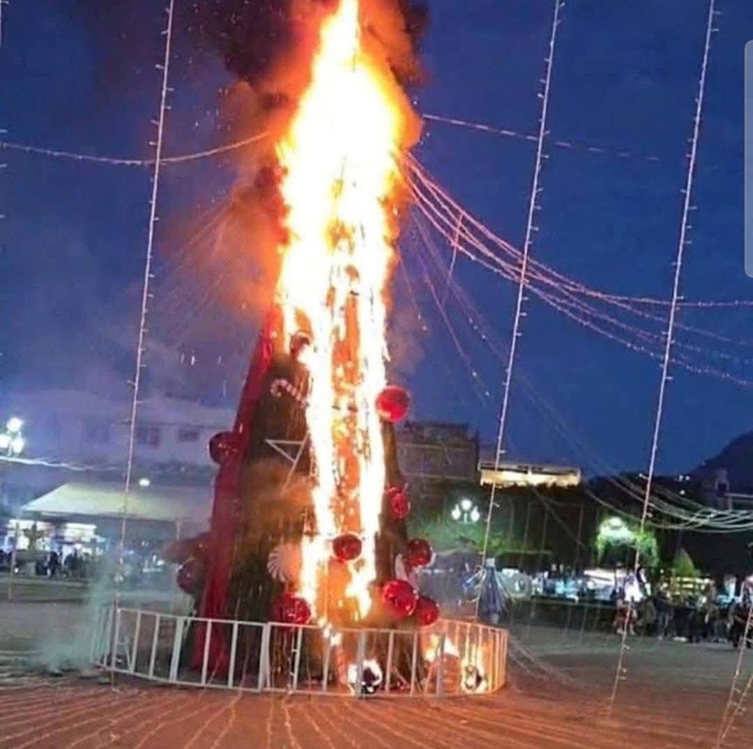 La movilización inició con una marcha pacífica que recorrió varias calles del municipio. Entre consignas, pancartas y exigencias de justicia, los manifestantes denunciaron no solo el crimen, sino también la manera en que, aseguran, las autoridades municipales están manejando el caso. Durante el avance de la marcha, la tensión fue incrementando conforme más habitantes se unían al contingente, hasta llegar a la plaza principal, donde se encuentra instalado el árbol navideño gigante, tradicional adorno que marca el inicio de la temporada decembrina.