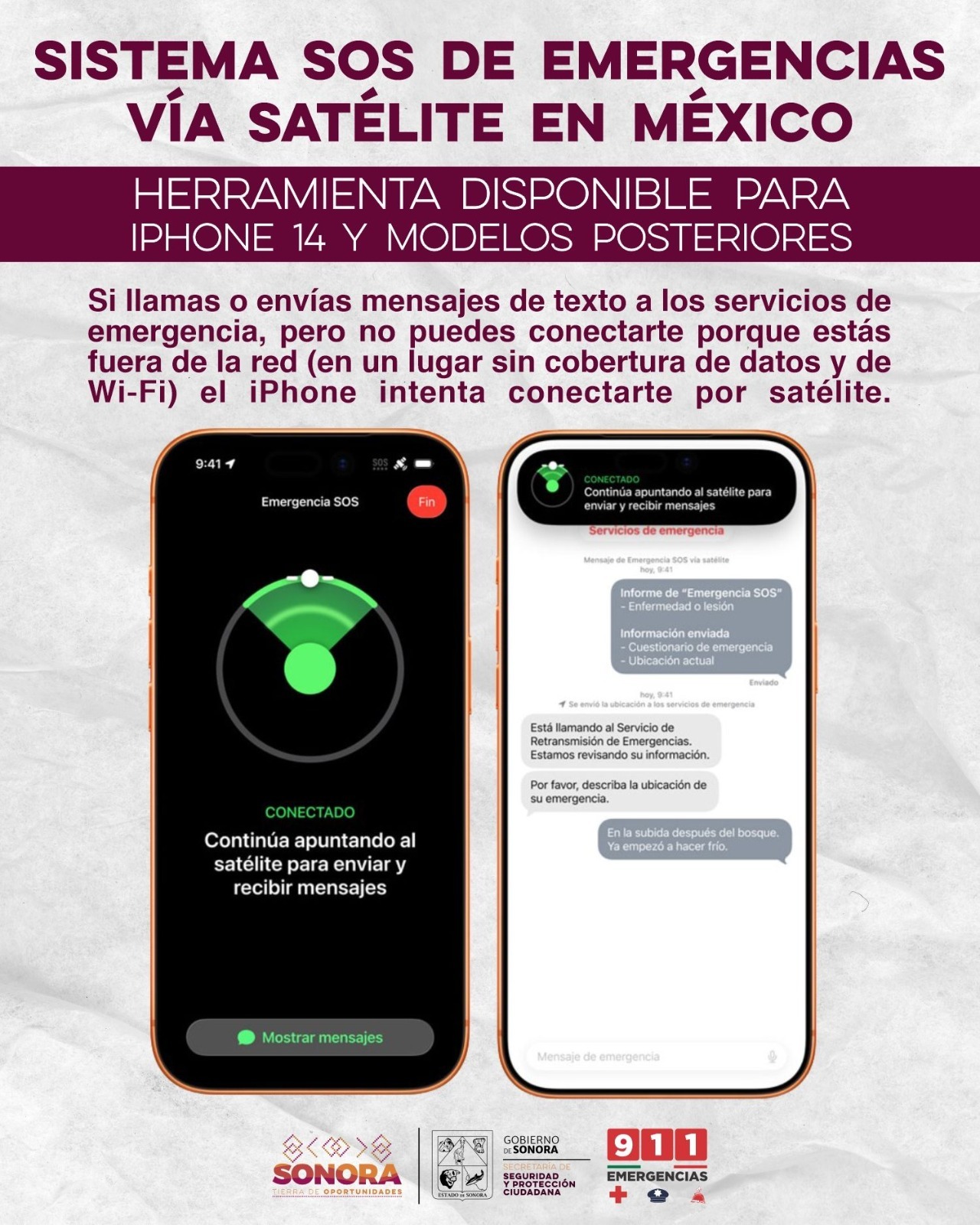 Este mecanismo funciona gracias a la tecnología incorporada en los modelos iPhone 14 y posteriores, y se logró mediante un trabajo coordinado entre el Gobierno de Sonora y Apple. Con ello, cualquier usuario de estos dispositivos puede solicitar ayuda de manera gratuita, siempre y cuando tenga acceso directo al cielo para conectar con los satélites.