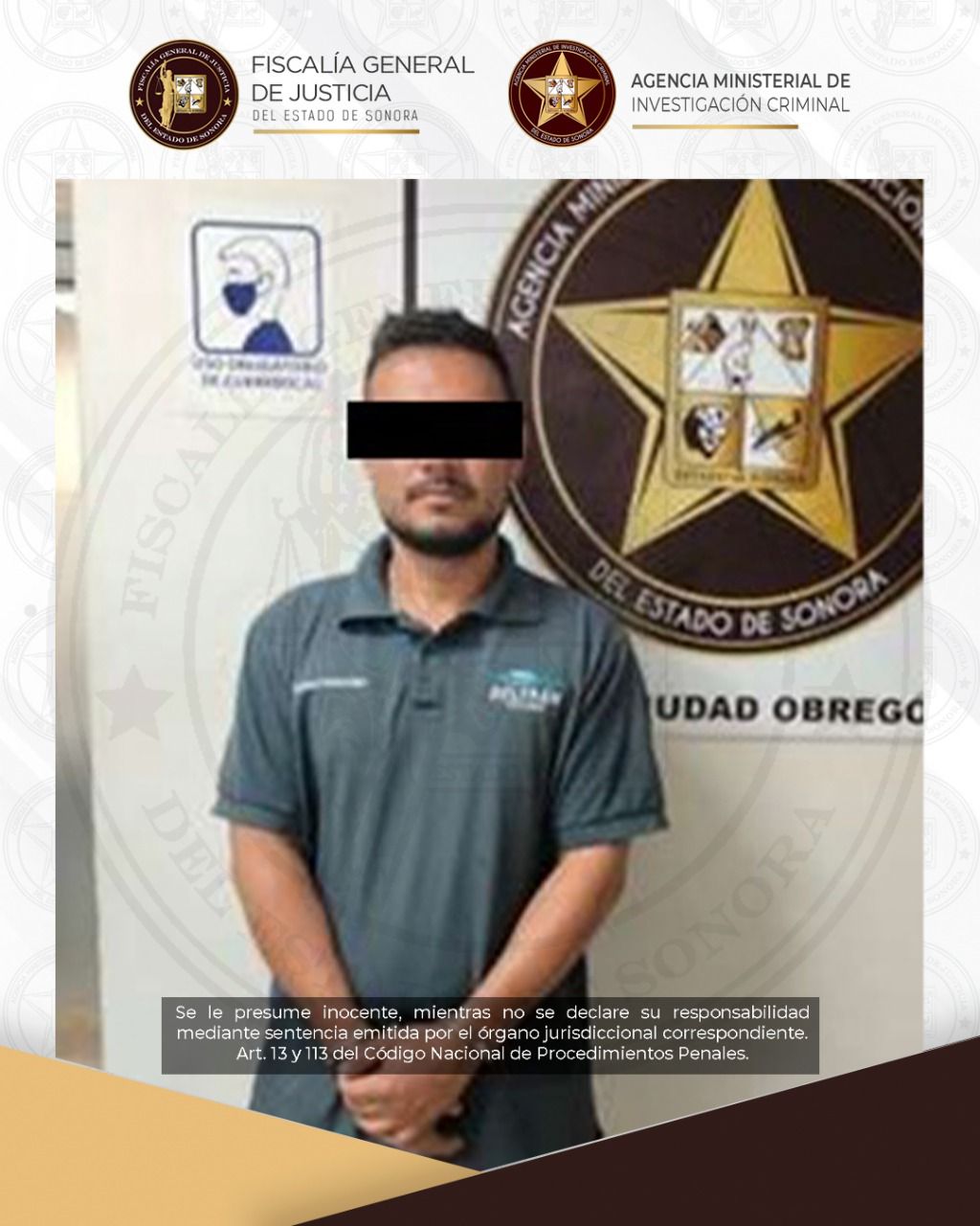 Ciudad Obregón, Sonora, 20 de octubre de 2025.- La Fiscalía General de Justicia del Estado de Sonora (FGJES) informa que, en continuación de audiencia inicial tras la ejecución de una orden de aprehensión, se logró la vinculación a proceso contra José Alberto "N", de 28 años, probable responsable del delito de violencia familiar equiparada, cometido en perjuicio de su ex pareja.