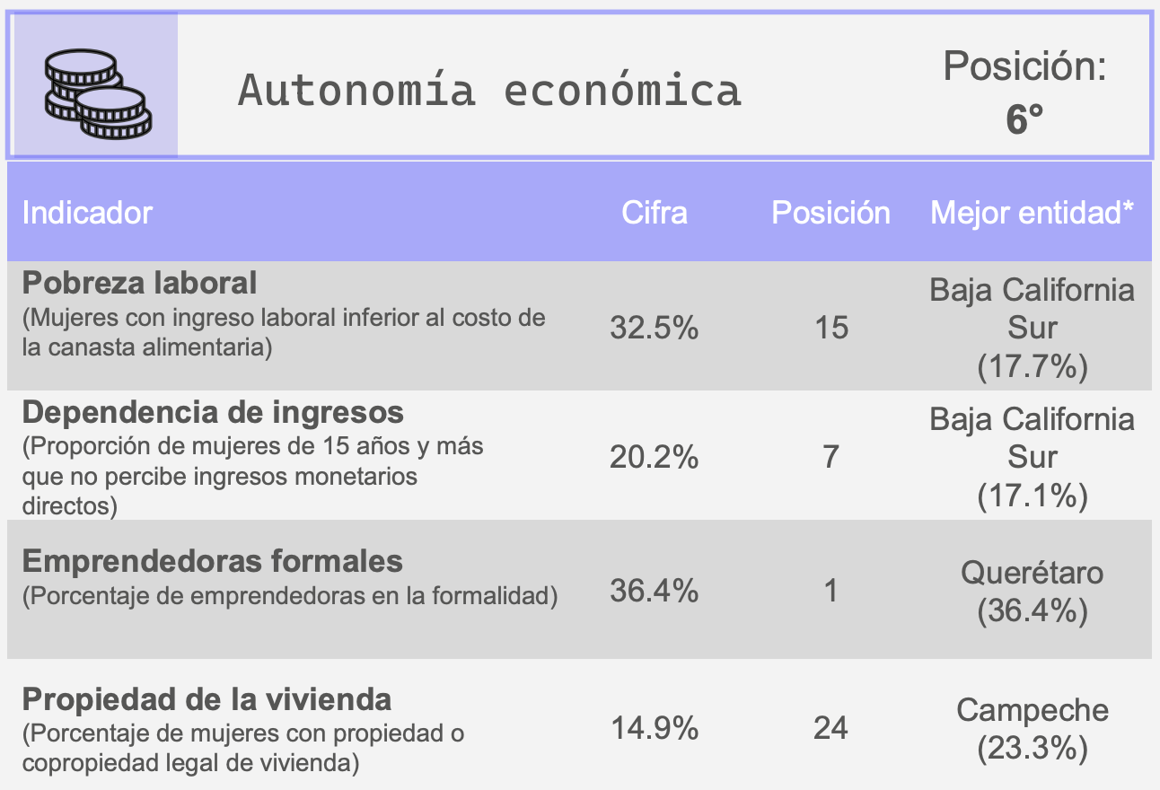 Todas estas cifras corresponden a la categoría de autonomía económica del reporte inicialmente mencionado, publicado el 26 de noviembre de este año.