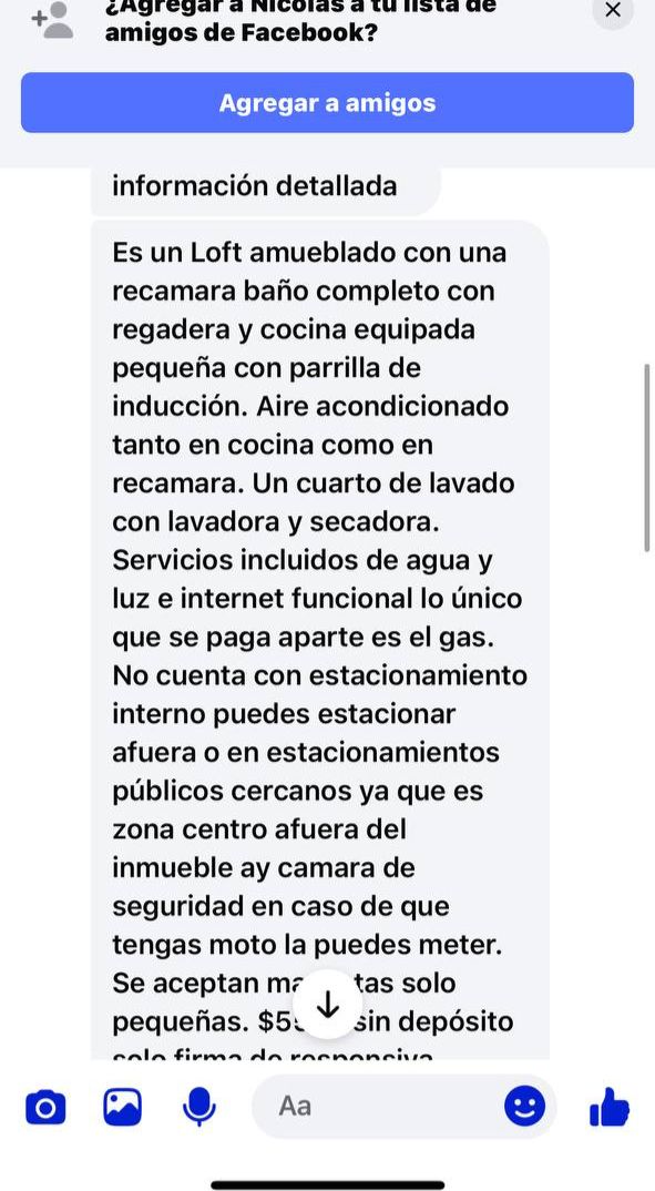 El modus operandi que se ha identificado recientemente inicia con publicaciones muy atractivas que ofrecen casas o departamentos céntricos, con varias amenidades y aceptación de mascotas. Las fotos parecen reales y los requisitos visibles son mínimos: "no aval", "no póliza jurídica" y solo un depósito pequeño, generalmente de entre 100 y 300 pesos. La ubicación nunca se revela con exactitud; solo se menciona "zona centro" o áreas generales de la ciudad.