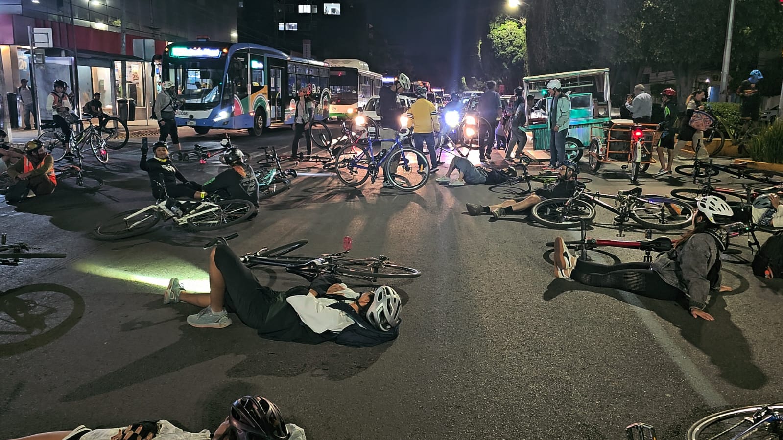 Como parte de la rodada Masa Crítica, visibilizaron la violencia vial en contra de ciclistas, que no sólo se manifiesta a través de conductores de automotores, sino también por la infraestructura vial.