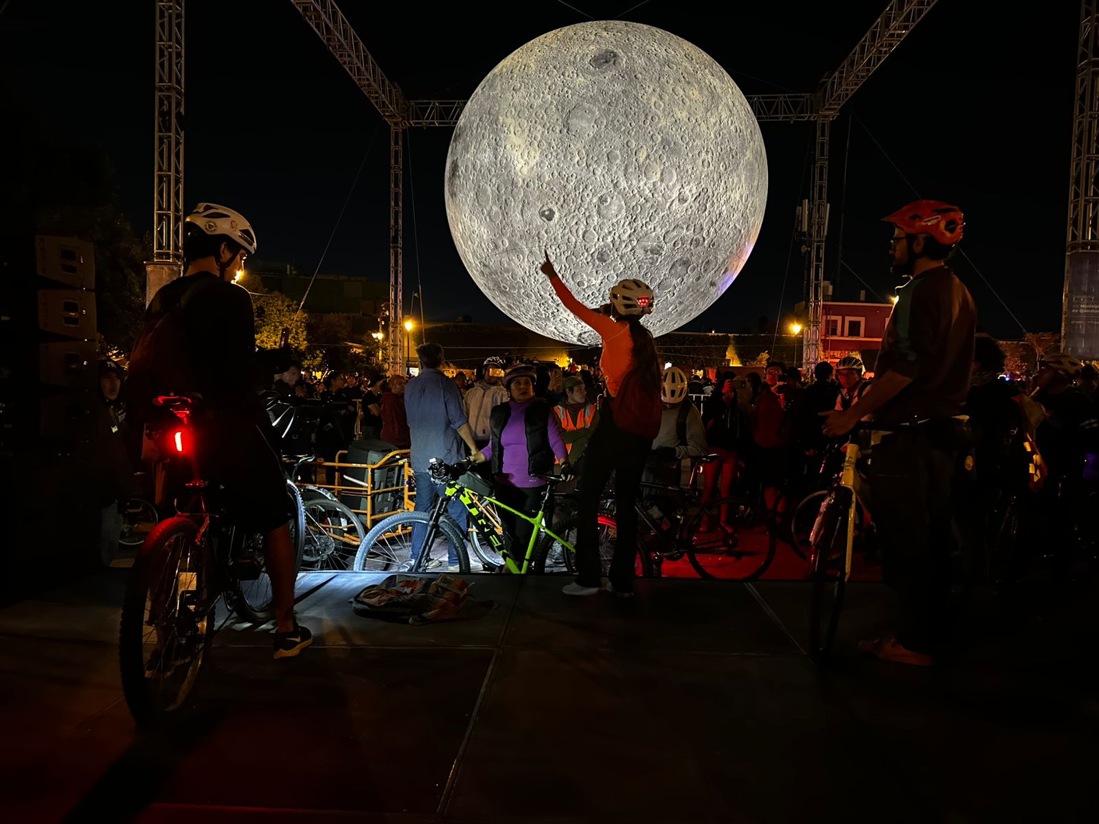 Tras 20 minutos, los ciclistas continuaron su recorrido hacia Avenida Constituyentes, mientras que el destino final fue la Plaza de los Fundadores, donde actualmente se exhibe una estructura de luna.