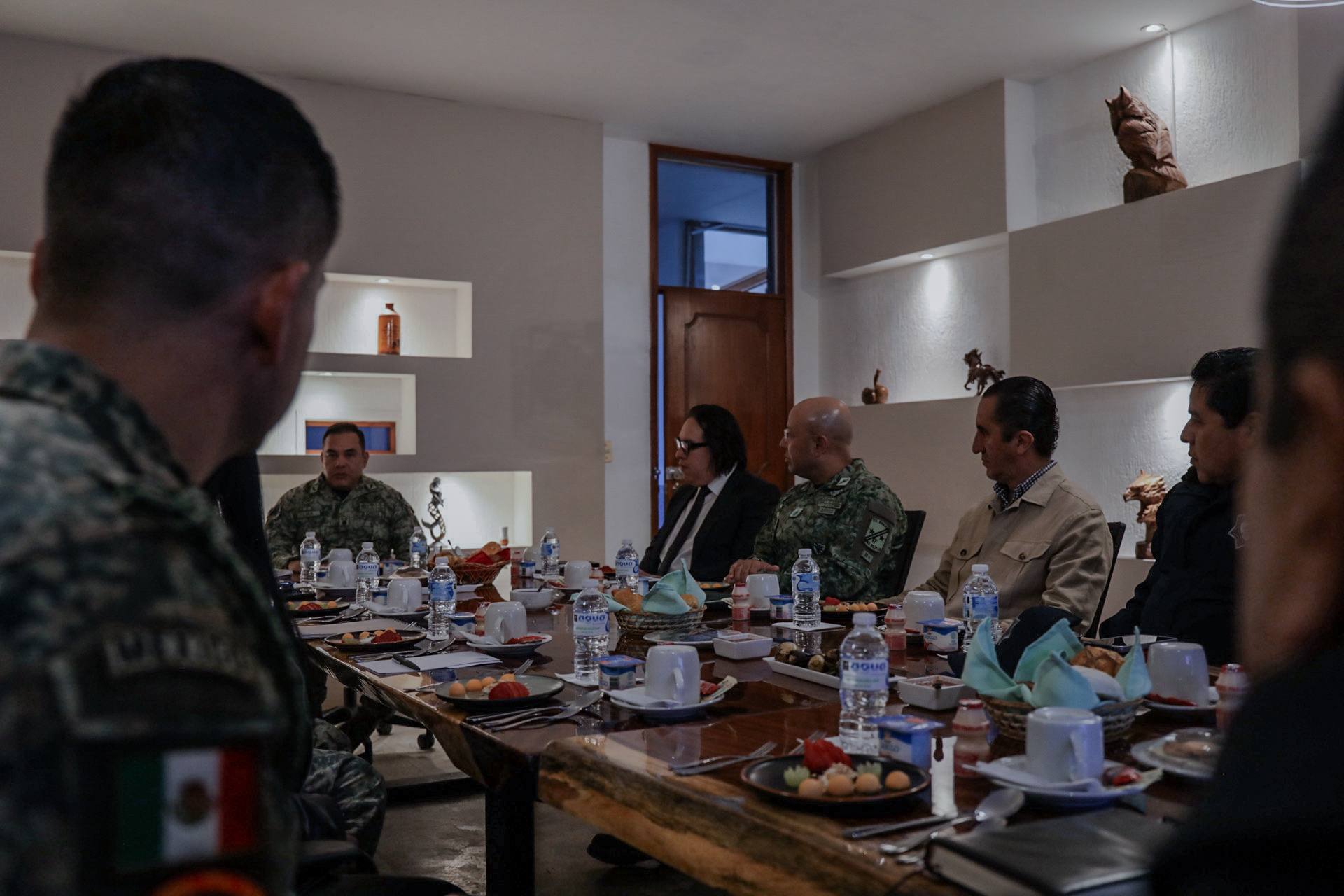 Autoridades de la Fiscalía General del Estado, la SEDENA, la Guardia Nacional, la Policía Estatal, la Legislatura local y el Gobierno del Estado sostuvieron una reunión de trabajo en las instalaciones de la 17/a Zona Militar, con el propósito de reforzar las estrategias conjuntas de seguridad y procuración de justicia en Querétaro.