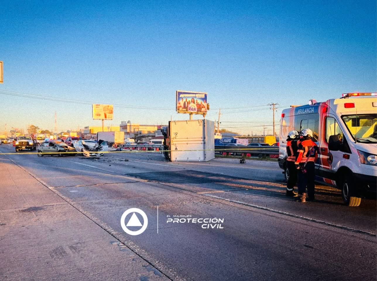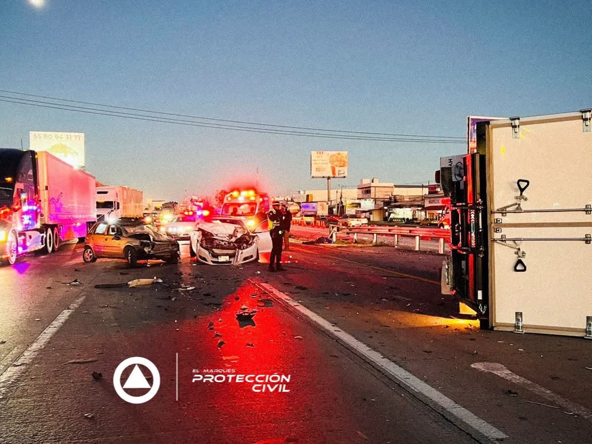La mañana de este jueves se registró una carambola entre dos autos ligeros y una camioneta de tres y media toneladas en la autopista 57 en dirección a la Ciudad de México, a la altura de la comunidad de El Colorado, municipio de El Marqués, que dejó sin vida al conductor de esta última unidad y 4 lesionado que viajaban en los otros vehículos.