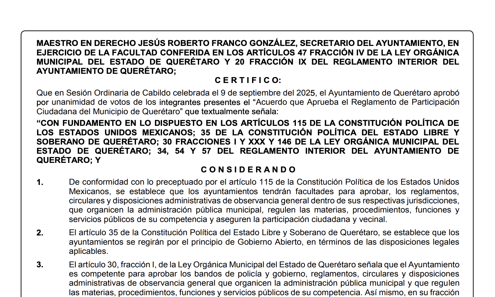 A partir del Reglamento de Participación Ciudadana del Municipio de Querétaro, aprobado en sesión de Cabildo el 9 de septiembre, los colectivos comenzaron con la colecta de firmas, la cual culminó el 15 de octubre.
