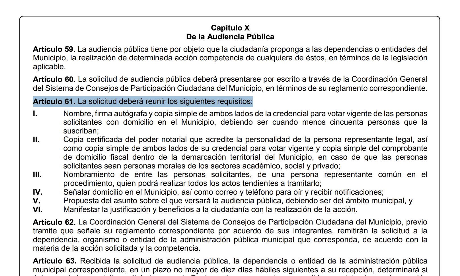 De acuerdo con el reglamento, además de estos requerimientos, se necesita el nombramiento de un representante común entre los solicitantes, la presentación de los temas a abordar durante la reunión y una justificación sobre los beneficios a la ciudadanía de realizar dicha audiencia.