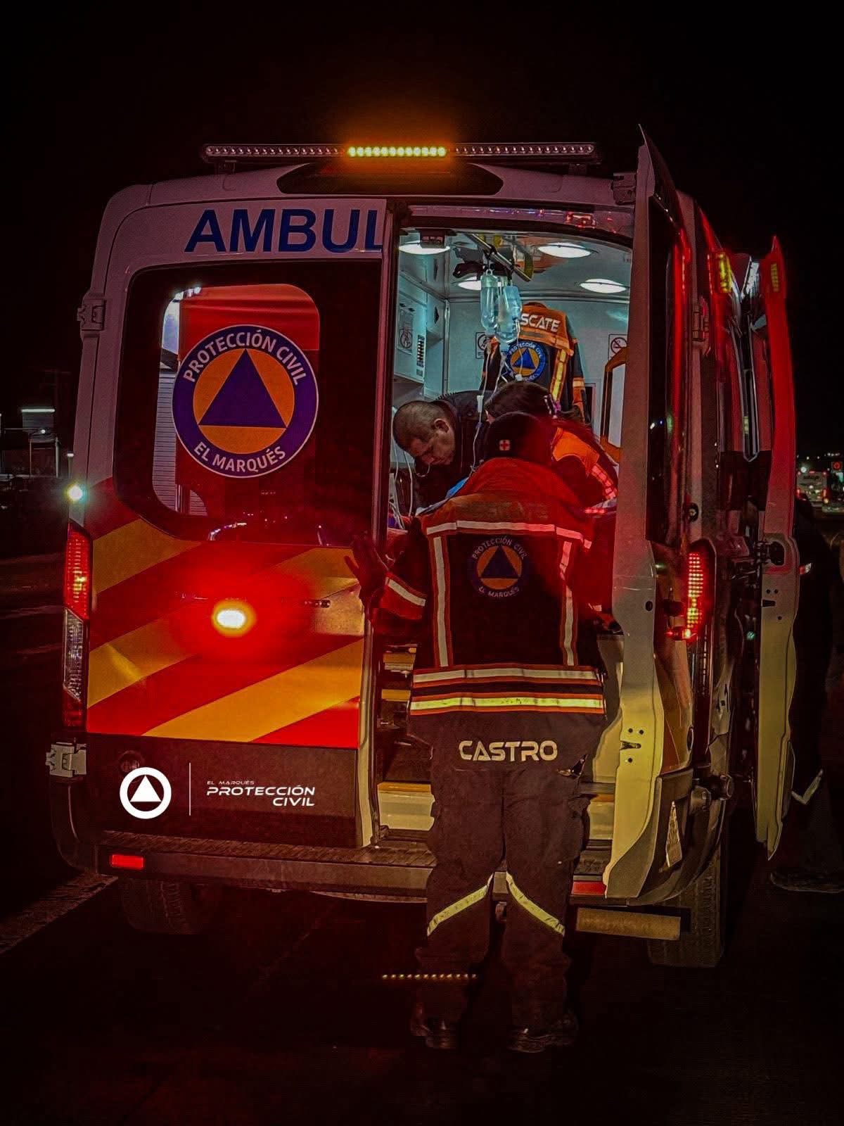 Al lugar acudieron cuerpos de emergencia de Protección Civil de El Marqués, quienes brindaron atención prehospitalaria a los lesionados. Tras ser estabilizados en el sitio, fueron trasladados de urgencia a un hospital; uno de ellos presentaba heridas de gravedad y el otro lesiones de consideración. La zona permaneció parcialmente cerrada durante las labores de auxilio y retiro del vehículo involucrado.
