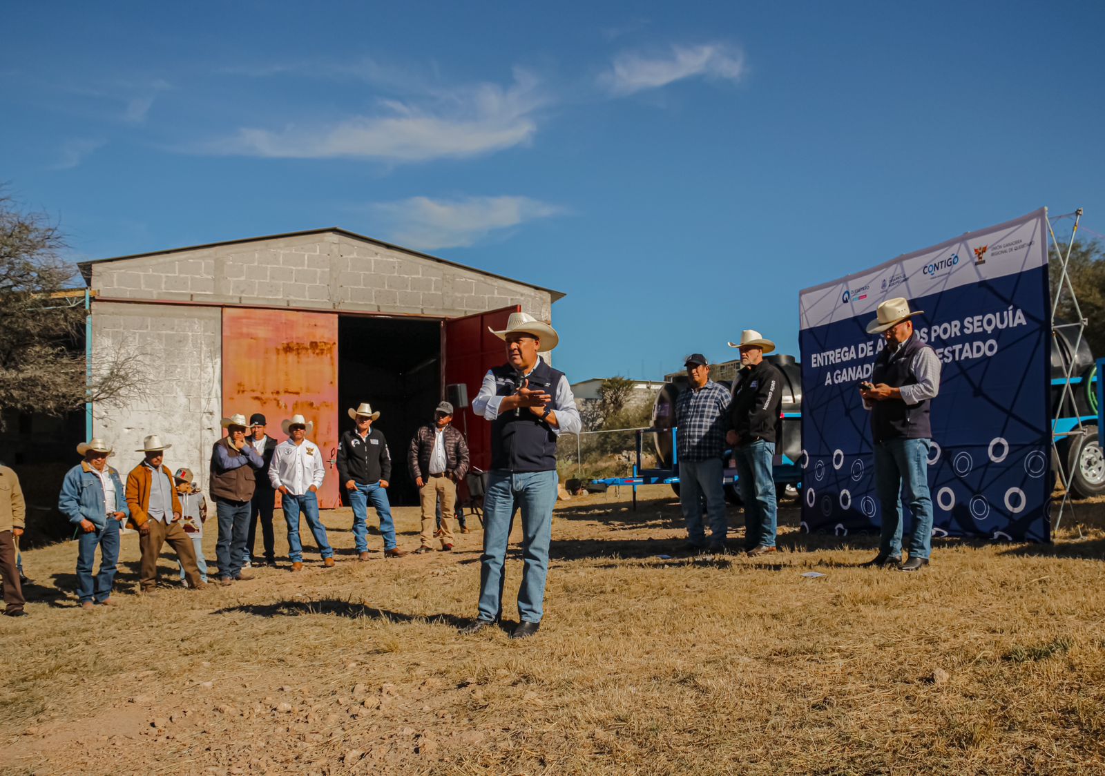 Anaya Aguilar señaló que, en el marco de la "Declaratoria de Emergencia" ante la crisis provocada por la temporada de estiaje, así como de la gestión de riesgos y contingencias agropecuarias, que anunció el Gobernador Mauricio Kuri el pasado mes de mayo, se hace entrega del equipamiento a las Asociaciones Ganaderas Locales y Especializadas, así como para la Unión Ganadera Regional de Querétaro con una inversión por más de tres millones de pesos.
