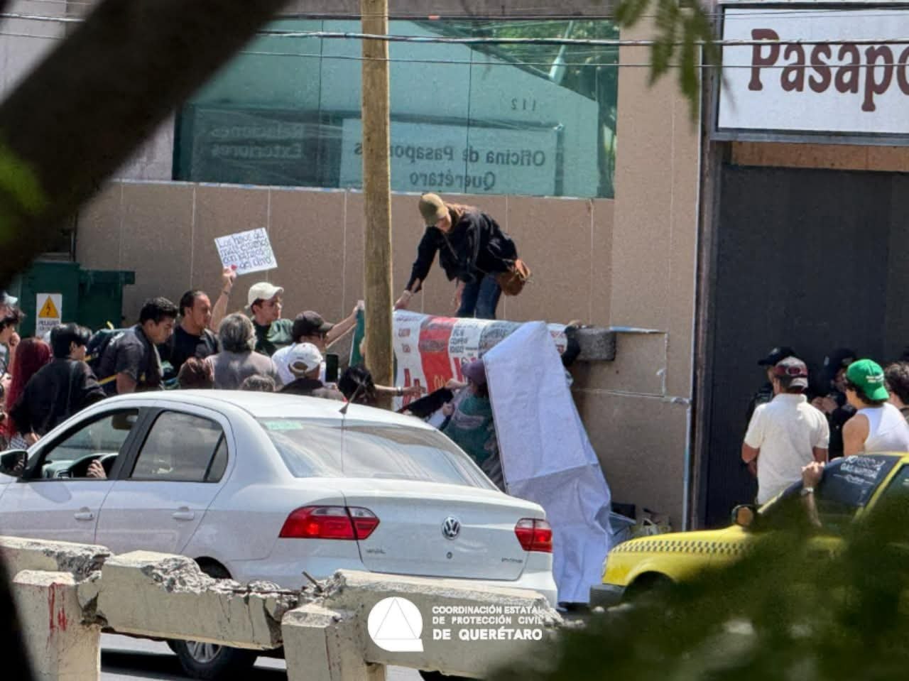 Tras unos minutos, los presentes se movilizaron hacia la lateral de Bernardo Quintana y se posicionaron afuera de las instalaciones de la Secretaría de Relaciones Exteriores (SRE).