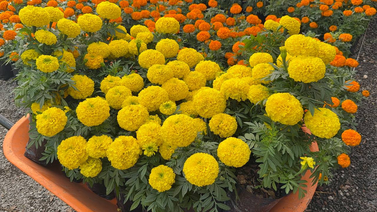 El resultado son flores fuertes y luminosas, de seis variedades distintas ?inca naranja, inca amarillo, inca oro, marbel amarillo, marbel naranja y marbel verde?, listas para embellecer la ciudad y acompañar las festividades de los fieles difuntos.
