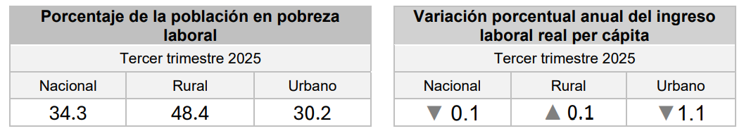 En las zonas rurales, donde la vida suele depender de empleos precarios y temporales, apenas hubo movimiento: de 48.5 a 48.4%. En las ciudades, el indicador bajó con más fuerza, de 30.7 a 30.2%