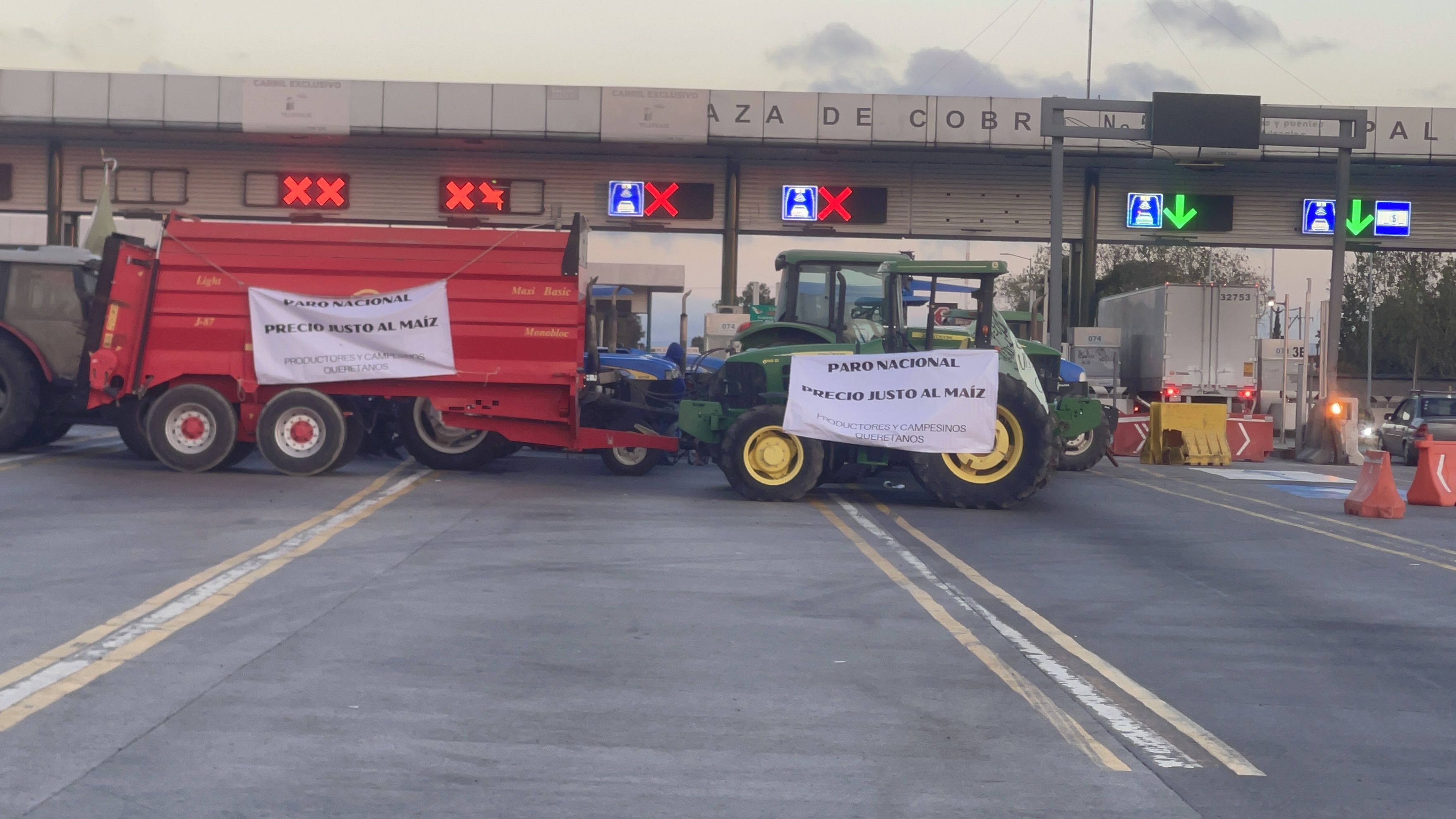 Productores agrícolas de Querétaro mantienen su presencia en la caseta de Palmillas, sobre la autopista México?Querétaro, en exigencia de un precio justo por tonelada de maíz y de ser incluidos en los acuerdos federales de apoyo otorgados a otros estados del Bajío. Desde la mañana de este miércoles, los manifestantes se instalaron en la zona sin bloquear completamente el paso, pero generando carga vehicular y largas filas.