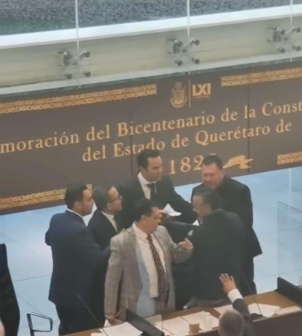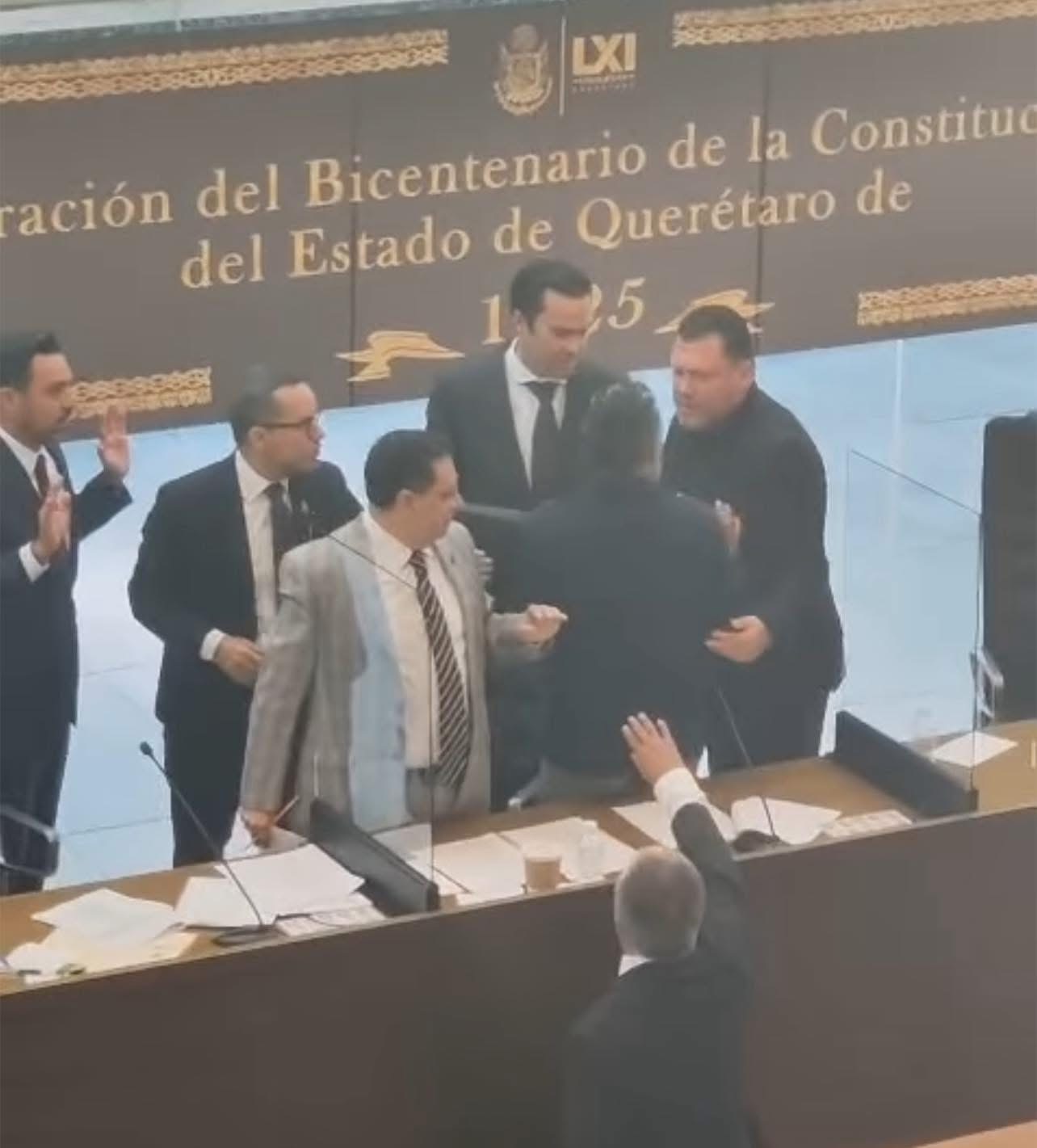 La sesión de la Legislatura de Querétaro terminó en un ambiente de tensión, luego de que se registraran jaloneos entre diputados durante la discusión para elegir a la nueva Mesa Directiva.