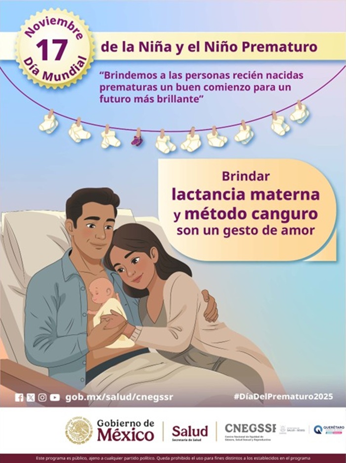 La Secretaría de Salud del Estado de Querétaro se adhirió a la conmemoración del Día Mundial de la Niña y el Niño Prematuro, que cada 17 de noviembre busca visibilizar los retos que enfrentan las y los bebés que nacen antes de las 37 semanas de gestación, así como la importancia de su atención inmediata para garantizar su desarrollo y supervivencia.