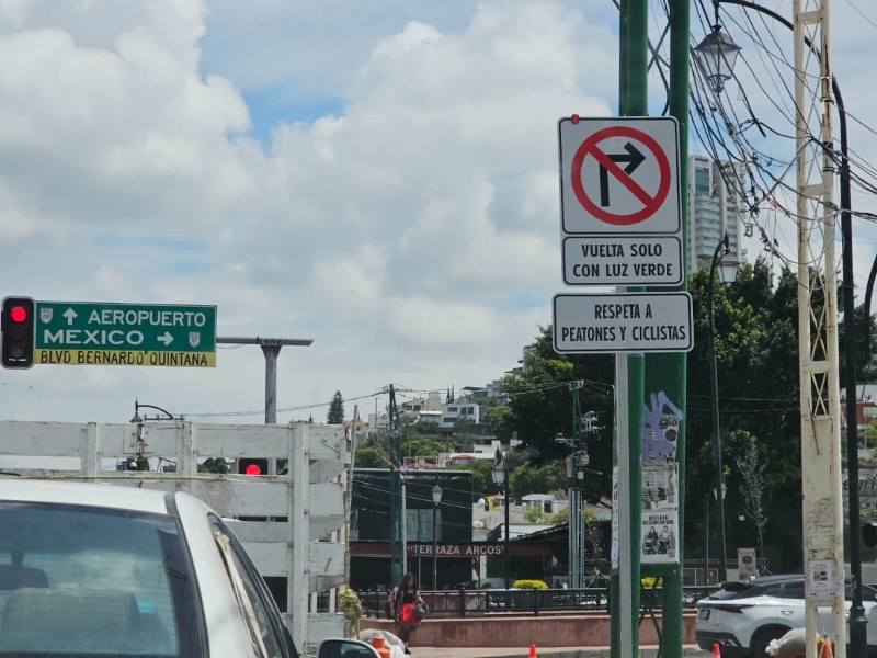 ¿Está permitida la vuelta continua a la derecha en Querétaro?