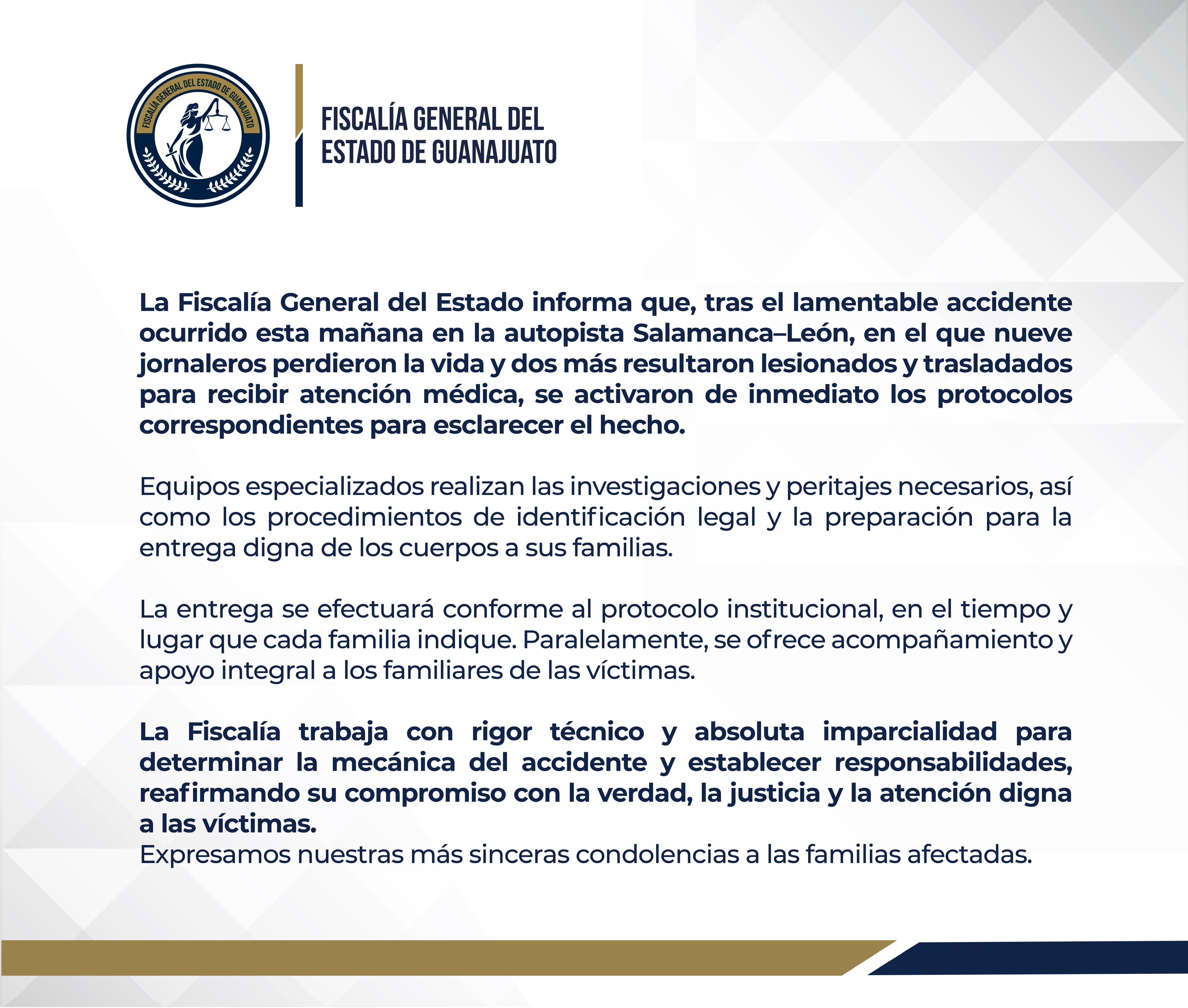 Un trágico accidente registrado la madrugada de este jueves en la carretera de cuota León-Salamanca, a la altura de la caseta de Mendoza, dejó un saldo de al menos nueve jornaleros fallecidos y tres más heridos.