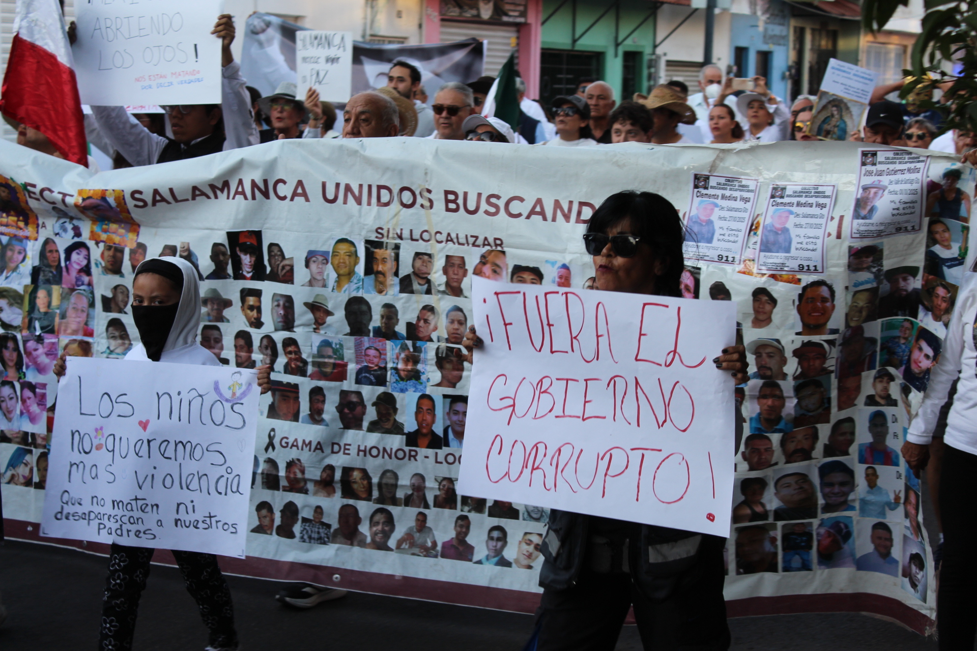 Durante el recorrido se escucharon consignas relacionadas con los homicidios, extorsiones y desapariciones que continúan golpeando a las familias salmantinas, así como por el reciente asesinato del ex presidente de Uruapan, Carlos Manzo.