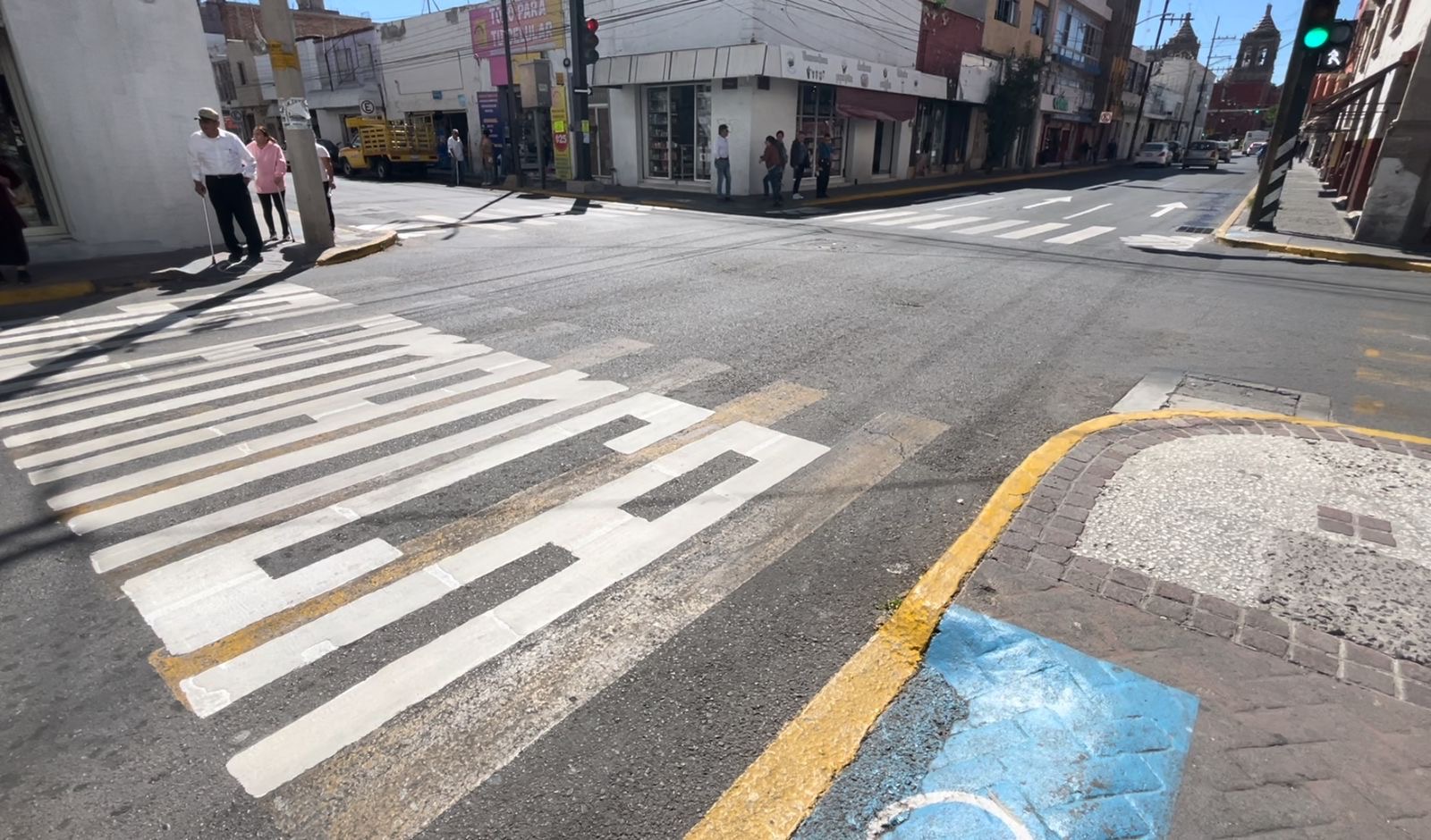 En pleno centro, durante la mañana de este jueves se registró un notable congestionamiento vial provocado por trabajos de pintura en la nomenclatura de calles.