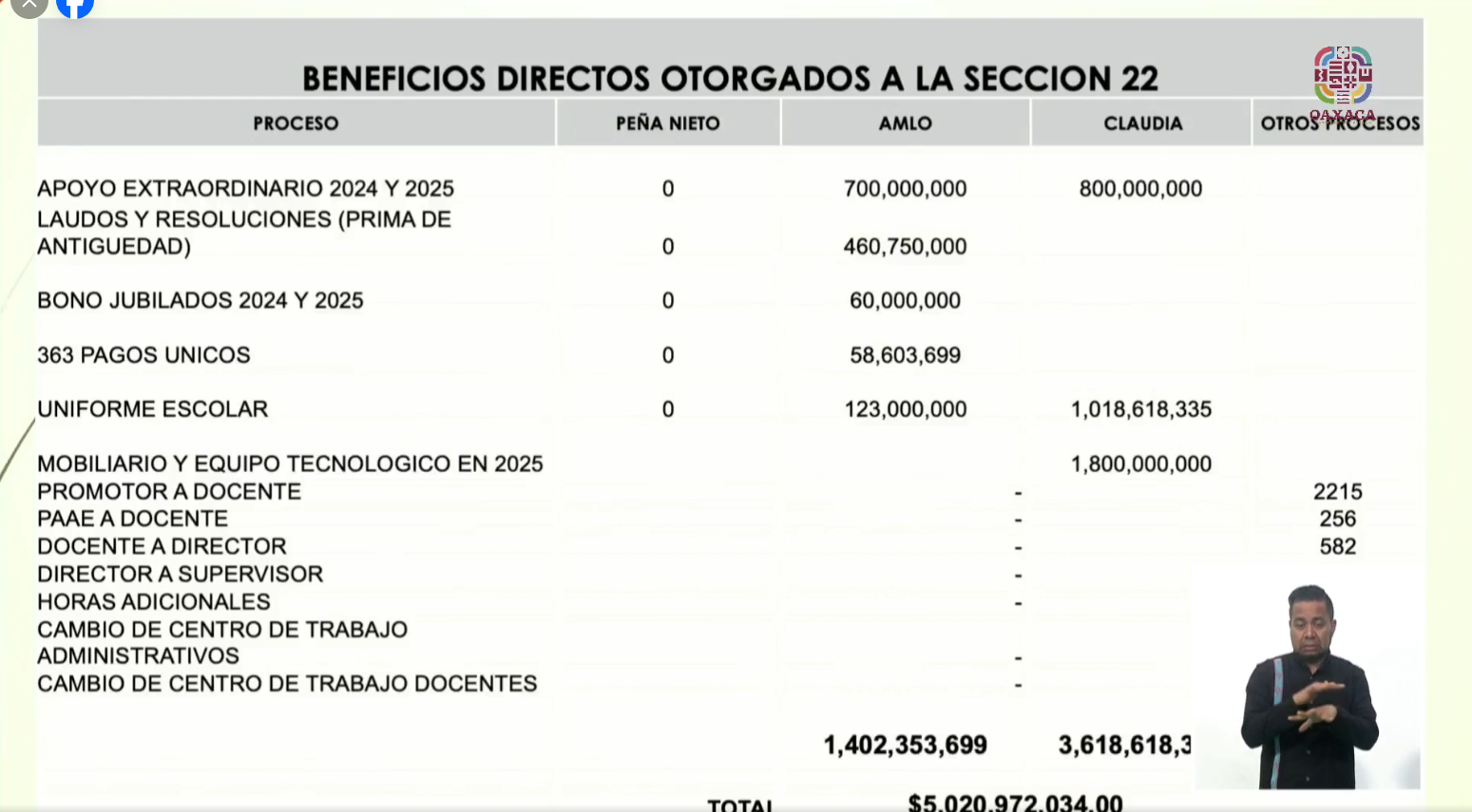 De acuerdo a las autoridades del gobierno del estado, las acciones de la Sección 22, no tienen justificación alguna, ya que ha recibido más de 5 mil millones de pesos en beneficios directos, entre el gobierno del ex presidente Andrés Manuel López Obrador y de la presidenta Claudia Sheinbaum Pardo, pese a ello, el magisterio mantiene bloqueos y protestas que generan caos y molestia entre la ciudadanía.