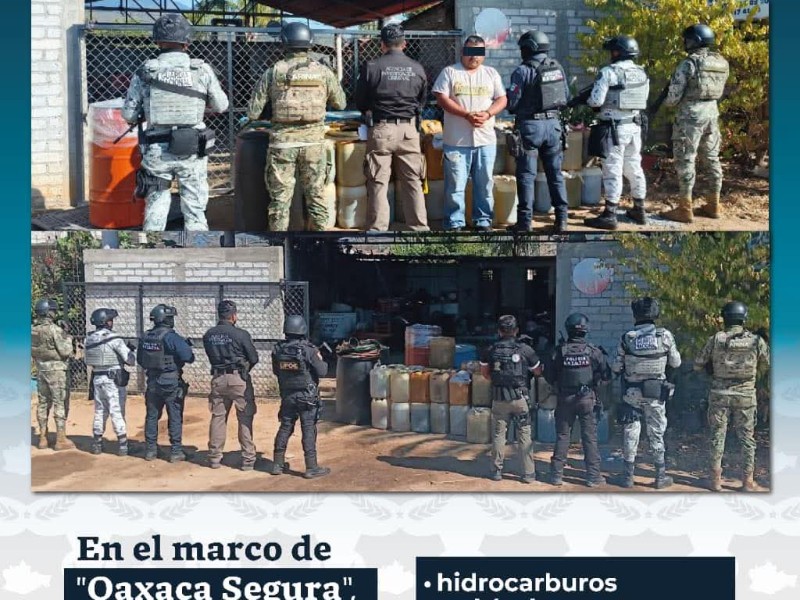 Aseguran Policía Estatal y FGR hidrocarburos y vehículos en domicilio de Oaxaca