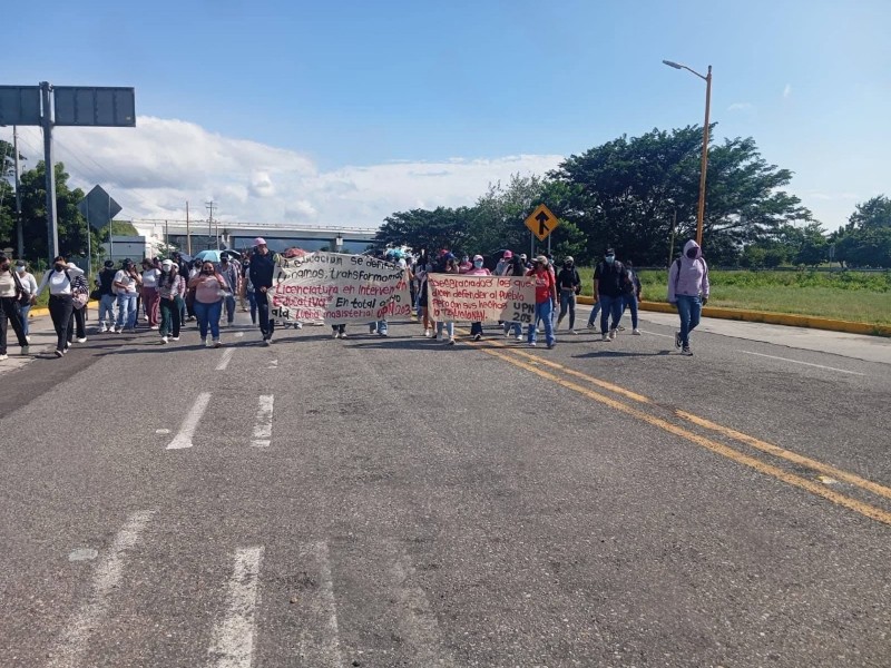 Egresados de la UPN bloquean caseta en Ixtepec para exigir respuesta laboral