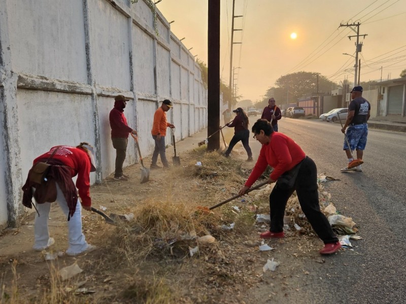 Realizan tequio de limpieza en camino viejo a La Ventosa, Salina Cruz