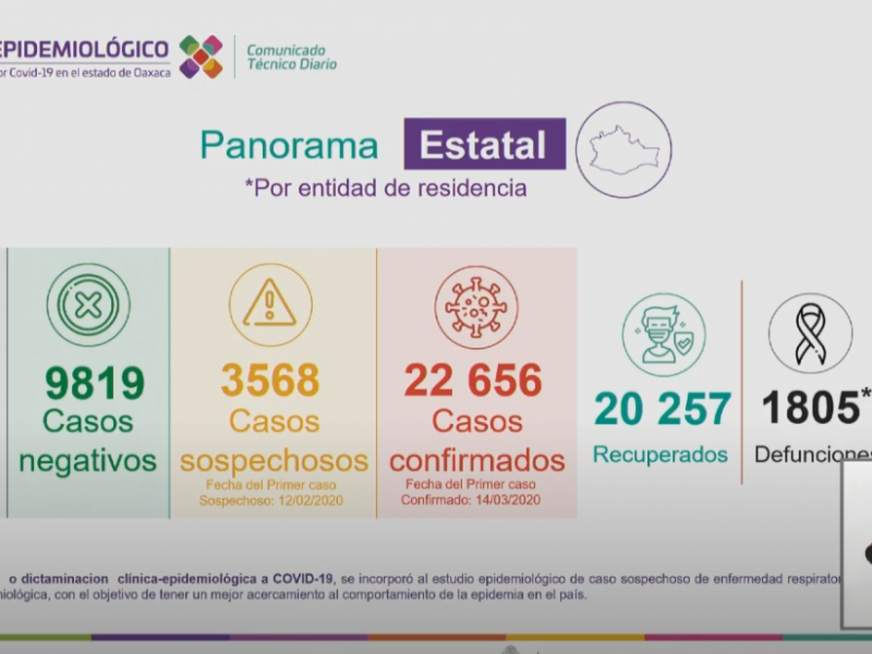 Oaxaca registra 44 defunciones en 24 horas por Covid-19