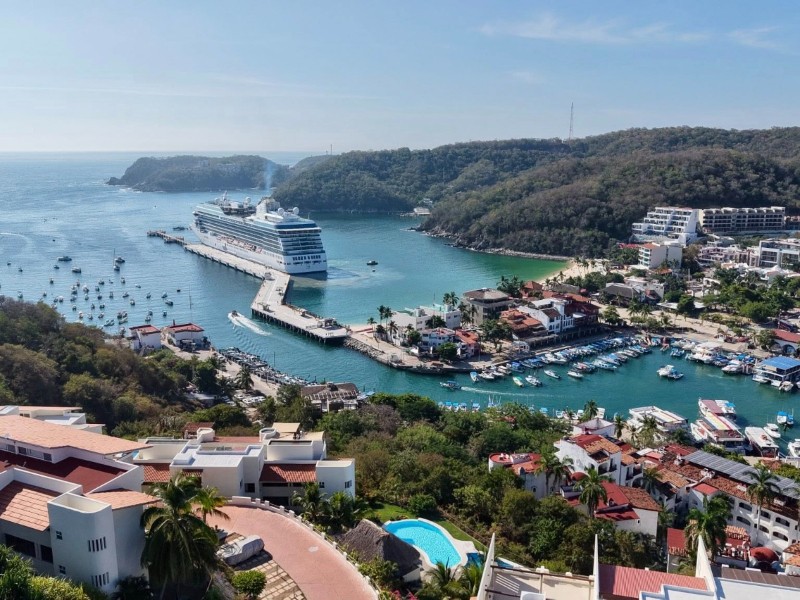 Arriba crucero Oceania Vista por primera vez al puerto Huatulco