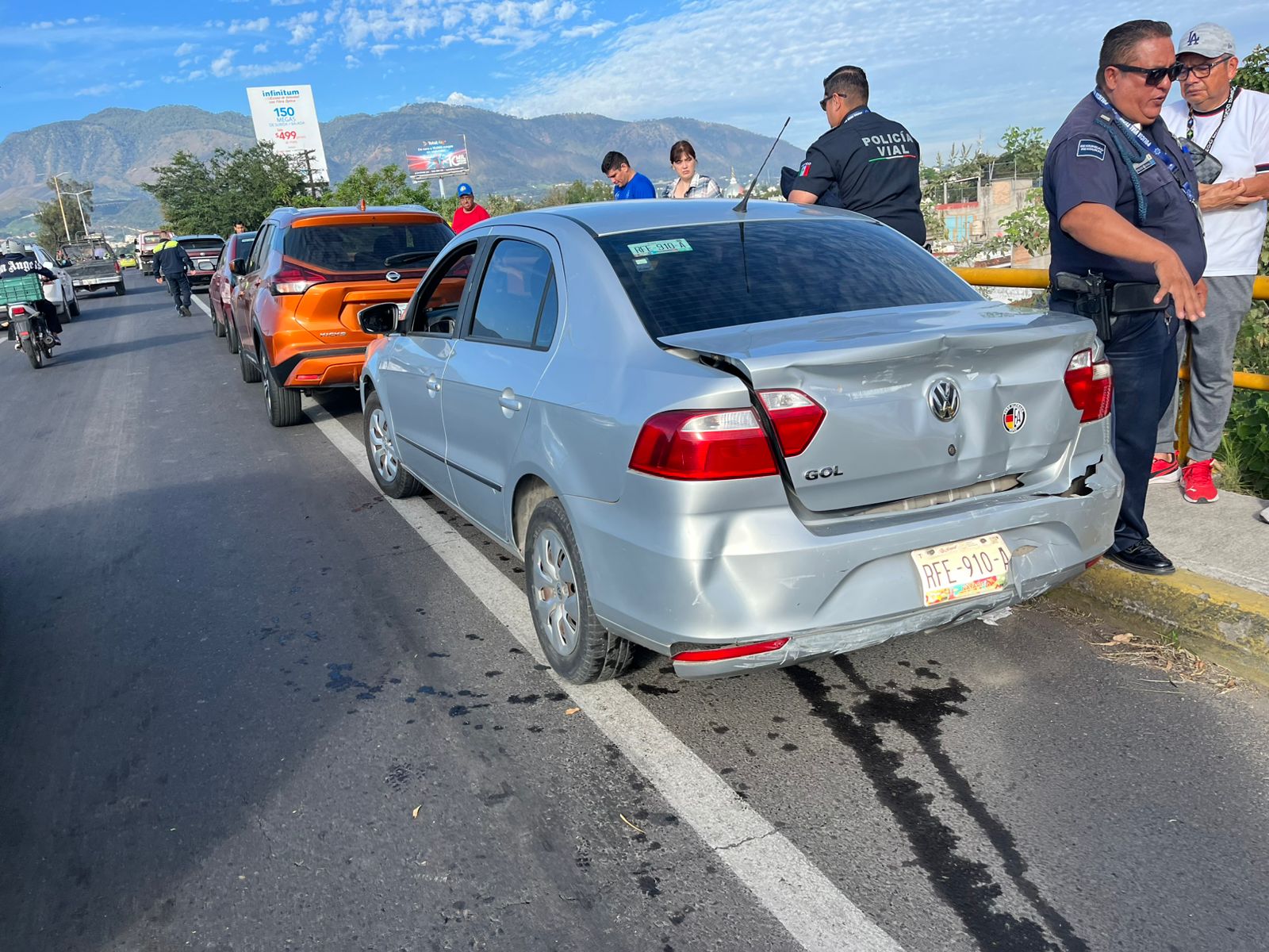 Elementos de la Policía Vial acudieron al lugar para coordinar las maniobras de retiro de las unidades involucradas y realizar los trámites correspondientes para el deslinde de responsabilidades entre los conductores.