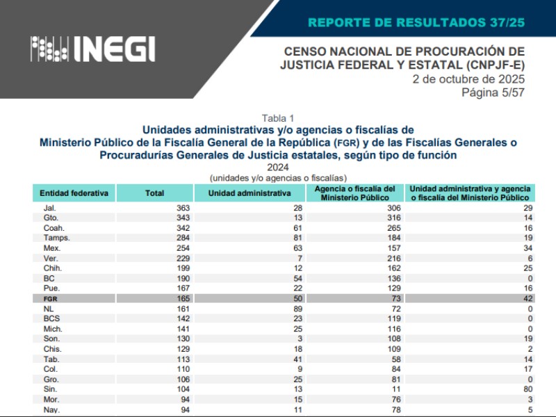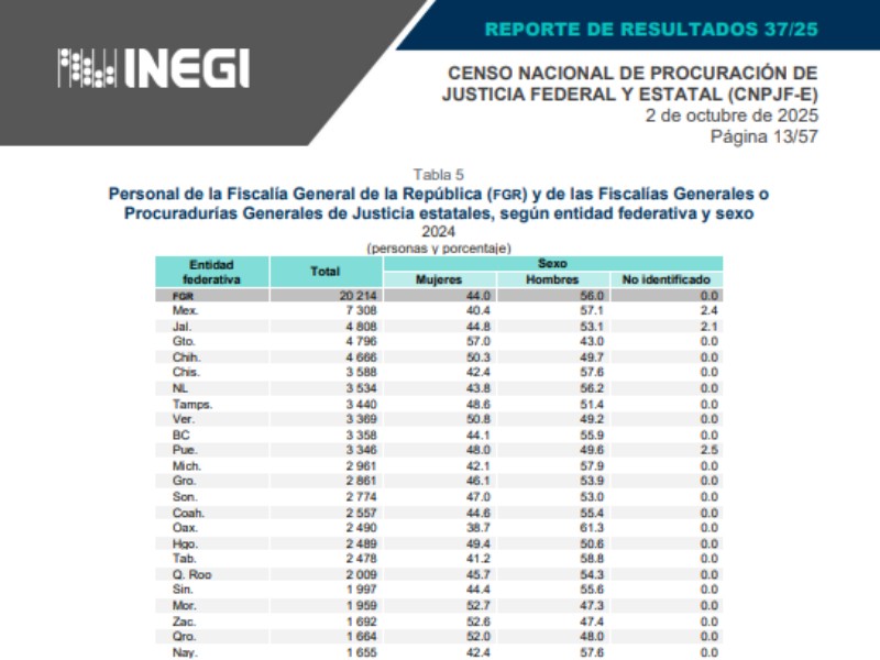 El censo muestra así que, más allá de los recursos presupuestales, el principal reto en Nayarit es la eficiencia en la integración de carpetas de investigación; mientras estados grandes concentran presupuesto y personal, la entidad enfrenta el desafío de transformar las denuncias en procesos con responsables identificados, un aspecto clave para fortalecer el acceso a la justicia.