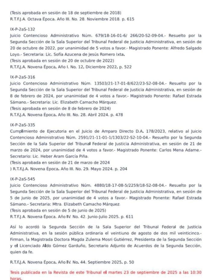 La tesis se publicó el 23 de septiembre de 2025 en la Revista del TFJA y entró en vigor al día hábil siguiente, es decir, el 24 de septiembre de 2025; a partir de esa fecha, el criterio es obligatorio para casos similares en todo el país, incluido Nayarit.