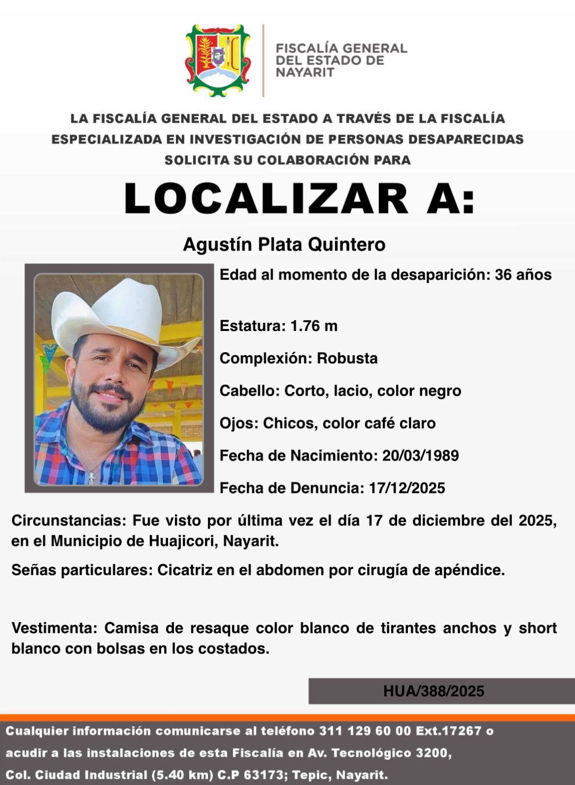 La comunidad de Huajicori vive momentos de gran angustia tras la desaparición del maestro Agustín Plata Quintero, quien fue privado de su libertad bajo circunstancias aún desconocidas. Familiares, amigos y miembros del entorno educativo del municipio se han movilizado de manera urgente para exigir la localización del docente.