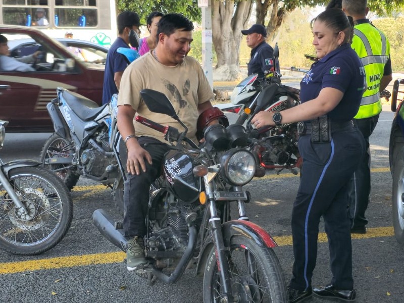 Para reducir riesgos viales y hacer cumplir la norma, autoridades de Tepic intensificaron los filtros dirigidos a motociclistas en distintos puntos de la ciudad; las revisiones verifican uso obligatorio de casco, límite de dos pasajeros por unidad, portación de placas y licencia, así como documentación en orden, cuando procede, se levantan infracciones y se remiten unidades al corralón; en algunos puntos participan fuerzas federales en coordinación con la Policía Municipal.
