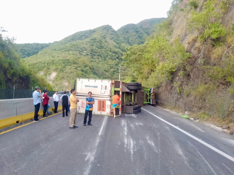La mañana de este lunes un tráiler volcó en la autopista 15D Tepic?Guadalajara, a la altura del kilómetro 81, en la zona de Plan de Barrancas, con dirección hacia Guadalajara; el percance provocó cierre total de la circulación en ese sentido por varias horas.