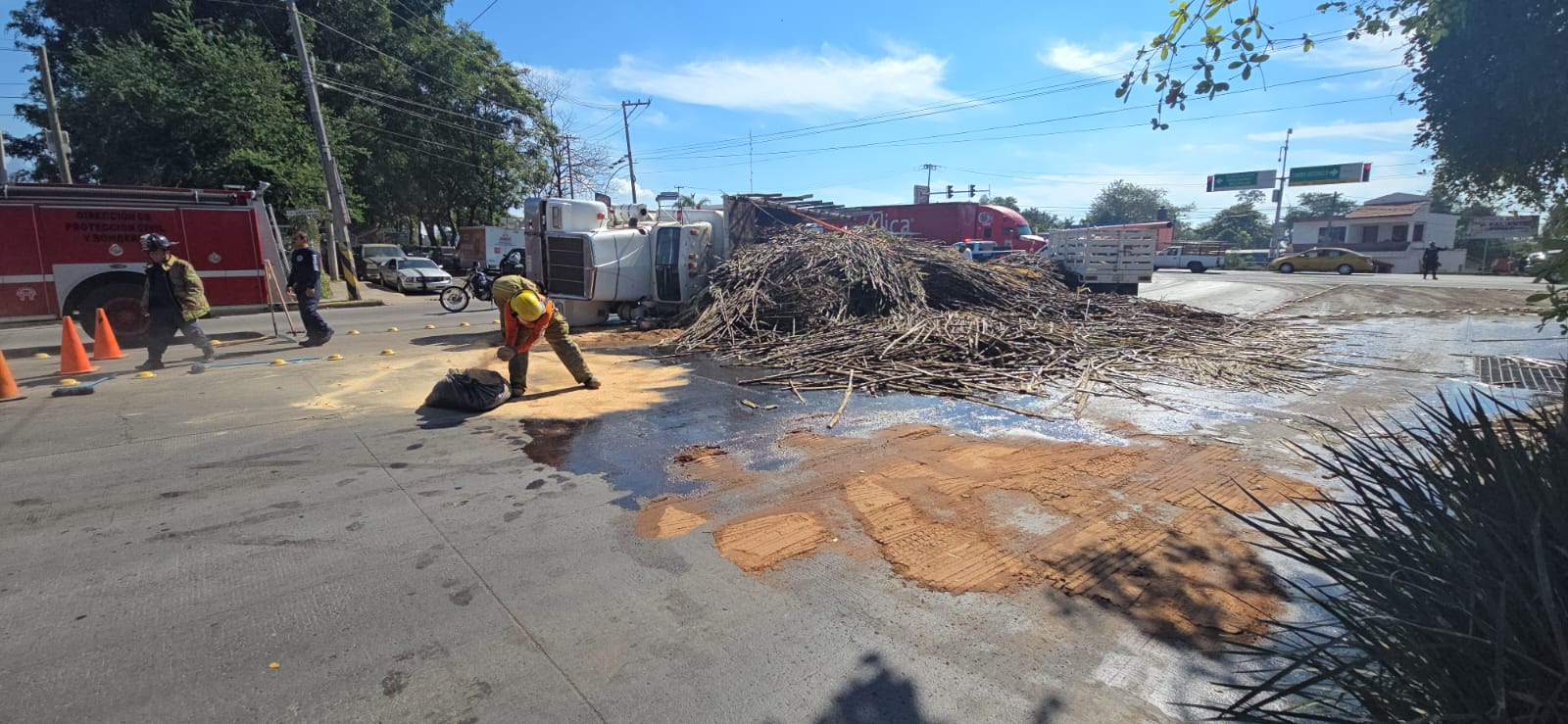 Debido al derrame de combustible y al riesgo que representaba, elementos de Protección Ciudadana y Bomberos de Nayarit realizaron maniobras para controlar el combustible y evitar un percance mayor, ya que el accidente se registró a unos metros de una gasolinera.