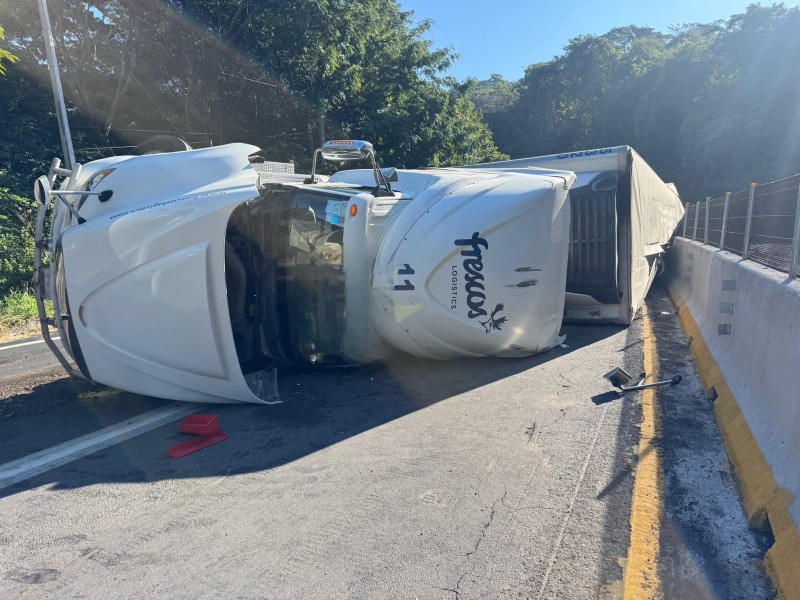 Vuelca camión en la Autopista a Mazatlán; no se reportan lesionados
